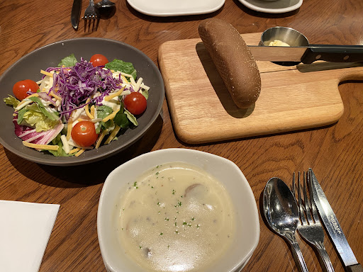 Read more광천점이 바뀌고 나서는 처음갔는데 예전 아웃백만의 느낌은 없지만 ㅋㅋ 넓고 깔끔하고 쾌적해졌더라구요 ! 식전빵, 블루치즈 드레싱의 샐러드, 양송이스프, 투움바파스타, 오렌지에이드, 퀸즈랜드 립아이 스테이크 먹었어요 사진을 식사 중에 찍어서 좀 지저분하네욥😢