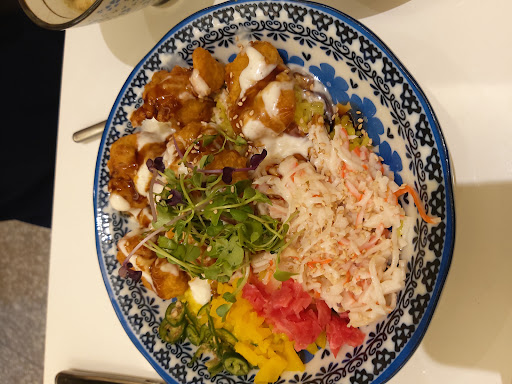 치돈새.덮밥 가라아케 덮밥 등 덮밥 메뉴에는 아마 공통적으로 치자밥(노란색밥)이 들어가는 것 같아여. 맛을 평가하자면 덮밥같은 느낌이 부족한 덮밥이였습니다. 덮밥이 좁지만 깊이가 있는 그릇에 나와 소스가 밑으로 잘 스며드는 느낌인데 비해 여기는 넓은 그릇을 썼어요.즉 소스가 그렇게 마니 있지 않아요. 그냥 튀김에 소스를 쳤을 뿐 밥 자체에는 다른 소스가 없습니다. 흔히 덮밥은 간장을 베이스로 해서 달걀을 풀어서 결국 밥 위에 올리는게 흔한 정석적 방법인데 이 곳은 그냥 튀김이랑 밥이랑 따로 노는 느낌이 매우 강했어요. 소스가 부족해서.그런지 밥만 결국 남게 될 수밖에....