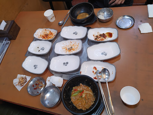 바쁜가보다 하고 제가 직접 반찬을 손수로 다 내리니 중간에 와서 안먹겠냐고 반찬을 다시 쟁반에 담고 다 가져가려 하는거에요. 전골이 나오니 쟁반에 반찬을 두고 먹으라니... 둘러 보니 다른 테이블에 쟁반 통째로 반찬 받는 사람은 없더군요. 은근 내 시어머니 도 아닌데 (음... 시모도 요즘 이렇게 못합니다) 처음온 식당 손님에게 눈치를 주질 않나.. 서빙이 싫으면 다른 직종에 구박 할수 있는 위치에 계시는게 나을듯 합니다. 처음에는 사장님인가 했네요. 기가 막혀 나오면서 혹시 사장님이신가요?? 했더니 당황하면서 아니라네요. 왜 가만히 식사 하는 손님을 건드리고 식사 내내 불쾌하게 대하는지 이해가 안가네요. 기분이 안 좋으시면 다른데다 푸세요 구글 리뷰 보고 갔다가 기분만 상했네요. 식당 사장님은 알고 계셔야 할것 같아 글 남깁니다. 김치 청국장에 돼지 고기 포함이라는 말도 써주셔야 할것 같아요. 알았으면 불고기 백반이라던가 다른걸 시켰으련만 일행 분은 돼지 고기가 있어 못드시고 반찬만 드시고 나왔습니다.
