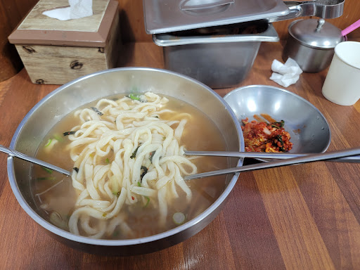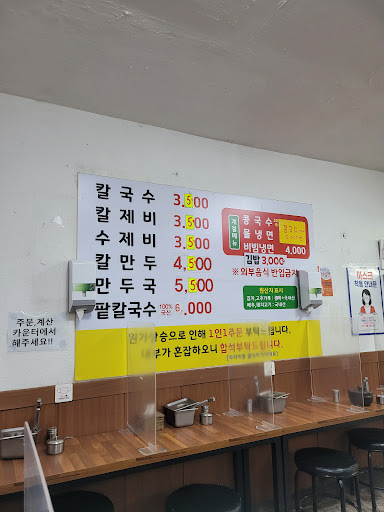 국물이 깔끔한 가성비 좋은 칼국수집입니다.. 주인아드님인지 젊은친구분이 방역에 신경쓰는 듯입니다.. 기본적으로 칸막이가 있으며 주문하고 앉아있을때 마스크 벗고있으면 찿아가서 공손하게 식사전까지 마스크써주십사 작은소리로 부탁하는게 보기 좋음.. 가성비 기본에 양도 적은양은 아님.. 그릇의 모양이 작아보이는 거임.. 국물은 깔끔하고.. 기본적으로 양념장섞어야 맛이 배가됨.. 김치가 국산이라 직접만든시는지? 무척 맛남..단지 국수를 기계로 뽑는면이라 그런지? 옆에있는 광명홍두깨칼국수보다는 면발의 아쉬움이 있음.. 홍두깨칼국수와 각각의 국물맛 차이가 있지만..김치는...