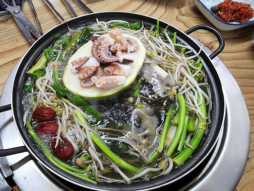 Read more알배기 쭈꾸미가 먹고 싶어서 갔는데 세상에 2명인분 여섯마리중에 다섯마리가 알이 꽉차있었어요. 푸짐한 야채에 힘찬 쭈꾸미 맛있게 먹고 왔네요. 그런데 그 다음주에 식구들 다 데리고 또갔는데 4명인분 큰쭈꾸미 8-9마리중 알배기가 엉성하게 딱...