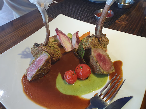 Read more양갈비를 맛보고 맛의 신세계를 느꼈습니다. 피자도 맛있지만, 양갈비는 무조건 드셔보시길 권합니다. 미디움으로 구운 양갈비가 한우마냥 혀에서 녹아내리며 그동안 먹은 양고기는 특유의 누린내가 맛이라 생각했던게 얼마나 맛의 경험이 짧았는지 알게해주는 맛이었습니다. 표면을 촘촘히 감싸주는 곱게 으깨놓은 피스타치오 가 식감의 즐거움을 선사하며 양고기에 의외의 조합이라는 생각을 부수고 너무나 자연스럽게 맛과 향이 어우러집니다. 직접 만든 소스는 그림처럼 플레이팅되어 3가지 소스를 함께 곁들일때마다 새로운 맛의 기쁨이 되어 나옵니다. 이런 외딴곳에서 정말 의외의 식당을 발견했습니다. 가격이 비싸지만 그 가격...