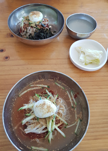 Read more최악입니다. 평소 메밀 막국수를 즐겨먹는 편인데 메밀 함유가 거의 없는 것 같이 면의 색이 시중 소면처럼 밝은 색이고 맛차이도 모를 정도입니다. 가게 운영이 개판입니다.계절 메뉴인 떡만둣국도 시켰는 데 한참을 기다려도 나오질 않아서 여러 차례 주문이 제대로 됐는지 확인 차 주방까지 가서 물어봤지만 거의 다 됐으니 기다리시란 말만 하다가 결국엔 떡만둣국은 나오지 않아서 주문 취소하고 화만 나서 나왔네요. 자리가 좋아 사람이 많아 보이는 것 뿐 속고 들어가시는...