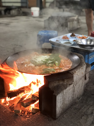미니 화로?? 위에 솥뚜껑을 올리고 옹기종이 목욕탕 의자에 앉아 먹는곳 여름에가면 덥지만 이열치열을 몸소 느낄수 있는곳 (먹다가 더우면 수돗가에서 시원한 지하수로 세수하면 리셋) 처음 셋팅을 빼고는 전부 셀프입니다 술도 물도 반찬도 셀프~ 불조절 칼같이 잘해 주십니다 처음 맛보면 짭니다;; 그때 면을 넣고 끓여 면 먹저먹으면 간이 딱 맞아요 칼칼하구요 양배추와 깻잎 요청하면 더 넣어주십니다 이것도 팁 들어가는길이 외길이라 차끼리 마주치면 난감합니다;; 타밍이 좋아야함 가능하면 미리...