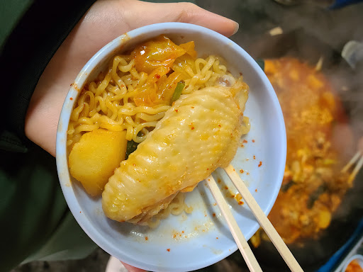 Read more토종닭이라 엄청 크고 쫀득쫜득합니다 국물을 살짝 졸인 후에 라면사리를 먼저 넣어 드세요 라면사리 반찬리필은 모두 셀프 음식 맛이 특출나지는 않지만 나무 타는 냄새, 가마솥에 옹기종기 모여서 먹는 재미가 있는 곳입니다 맛