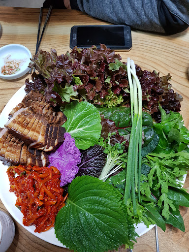 Read more춘천가던 구도로쪽에 있어서 가는데 오는데 시간이 다소걸렸지만 꼭 맛보고싶었던곳이라 다녀왔습니다. 보쌈은 큰접시에 쌈가득 주셔서 쌈채소 넉넉히 싸서 먹을수있어서 좋았습니다. 쌈장도 직접제조하셨는지 색깔도 진하고 맛도 진했습니다. 고기는 적당히 부드럽고 식감도 있으며 잡냄새를 100프로 잡진못했지만 98프로는 잡혀있습니다. 고기는 매우 맛있어요. 보쌈을 적극 추천합니다. 막국수는 제 취향은 아니었어요. 면발이 엄청 통통해요. 이때까지 먹은 막국수 면발 중 가장 통통합니다. 그런데 식감이 부드럽고 연한 편입니다. 씹었을 때 탱글탱글 쫄깃한 맛은 없어요. 면을 너무 많이 삶은 건가 살짝 의문이 들었는데 먹다보니 면이 부른 느낌은 아니네요. 먹는 방법이 식초 겨자 설탕을 추가해서 육수를 넣어 비비라고 되어 있어요 저는 식초 겨자 설탕 추가하는 걸 싫어해요 그래서 추가하지 않고 일단 먹어봤더니 좀 단순 밋밋한 느낌의 맛이었어요 차가운 육수를 조금씩 비율을 높여가면서 먹어보니 자작하게 육수가 있는 편이 훨씬 낫고요 식초와 겨자를 추가하면 좀 더 입에 더 자극적이고 깔끔합니다. 같이 나오는 백김치가 달달 새콤한데요. 그 김치를 막국수와 같이 싸...