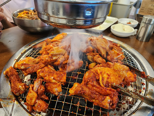 Highly rated for Korean BBQ chicken meat near Nami island ferry terminal, about 400 meters away. fast serving and cleaning to allow turn around faster. the Spicy chicken is not hot and acceptable. charcoals fire is big to increase the meat cooking but need to turn every 10 seconds to avoid overcooked and became burnt. chicken meat is soft and tender after bbq, nice and delicious to eat. must try when you are around this area. Parking lot is available outside the shop and you can see your car...