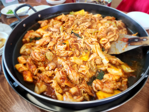 Read more매콤한데 싱거운(간장,설탕,마늘,파 넣어서 다시 볶고 싶었슴)..ㅠㅠ자극적인맛을 싫어하는 분들한테는 좋을듯.. 막국수는 양이 적어요..(육수가 적은 비빔막국수 같음)설탕을 두스푼반정도 넣어야 맛나게 드실수 있슴..육수와 깨, 김가루 가득한 고소한 기존막국수 비주얼 아니니 염두해둘것! 깍두기 리필했더니(깍두기 먹을만함) 사람은 세명인데 깍두기 한 7알 정도 줌.. 거기에 또 실망 여튼 또 가고싶을 정도는 아니네요.. 닭갈비재료는 싱싱한데 양배추맛이 많이나는 맛.. 떡사리의 쫀득함도 물컹쩍 달라붙고요.. 더...