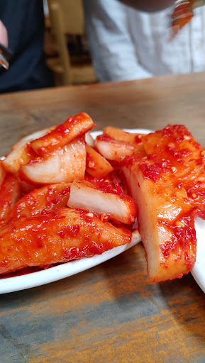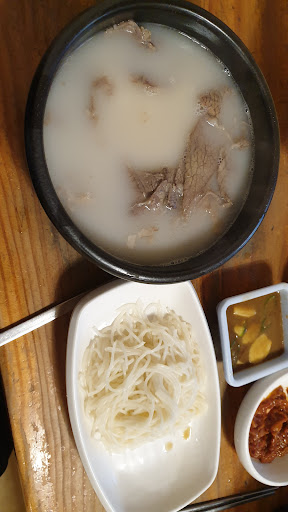Nice Seolleongtang place Would highly recommend. Theyll give you empty plates where you put Kimchi and Kaktooki and cut then using scissors (they are clean scissors just for that use) If you need more rice you can scoop some from the rice cooker in the middle of the room for free or so I've heard. The reason the food comes out so fast is because it takes a very long time to cook it so they make the whole batch beforehand and only heat it up before they serve. Doesnt mean it's...