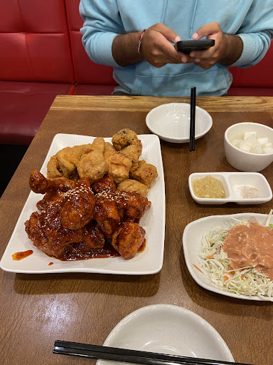 Read moreHadden al verschillende lokale Koreaanse restaurantjes gehad maar ze zijn allemaal even schattig/leuk met al even lekker eten, je krijgt gegarandeerd lokaal voer te eten. Kom je bij dit soort restaurantjes als zichtbaar buitenlandse toerist binnen heb je meteen aanspraak, ook al verstaan ze je niet. Deze was gespecialiseerd in KFC (met de K van Korea) en het was echt wel een paar stappen beter dan die met de K van Kentucky. Enorm behulpzaam personeel wat helaas het engels niet zo machtig is, maar met een beetje handen en voeten en de hulp van iemand die het wel kende (en vertaalapps) goed kunnen bestellen. Soju verstond de ober wel en haalde meteen de beste uit de koelkast voor me, was inderdaad lekkerder dan degene die ik al gewend was en zelfs mijn vrouw (niet zo van de alcoholische versnaperingen) vond hem smakelijk. Bestel je overigens soju in een restaurant krijg je er meteen het aantal glaasjes bij van het aantal volwassenen wat...