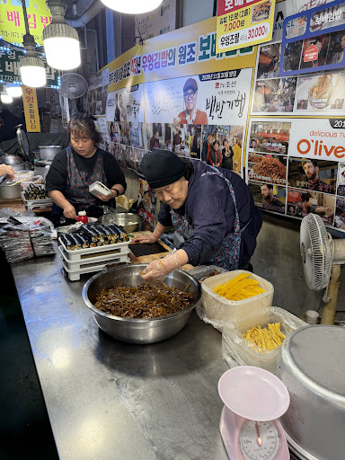 Read more제가 본게 사실인지 의심됩니다. 아무리 재래시장이라도 이런 위생관념을 가진곳이 있으면 안된다 생각해서 글 남깁니다. 25년 2월 23일 오후에 방문했어요. 우엉김밥을 팔길래 샀는데 가격은 두줄에 7,000원. 가격은 그래 납득한다 생각했습니다. 남자분께서 김밥을 잡고 써는 오른손은 맨손 김밥을 잡은 왼손은 비닐장갑을 껴서 그래 저정도면 뭐 괜찮다 생각했죠. 그런데 김밥을 담는데 그 맨손과 비닐장갑 낀손 둘 다 써서 담더군요..그래 그래도 오른손 깨끗하겠지..라는 저의 생각이 몇초만에 틀렸어요. 제가 계산하려고 현금을 드리니 맨손으로 김밥을 잡던 손을 행주에 슥슥 닦으시더니 돈을 받고 계산 하시더군요...또 다른 충격은 김밥을 담은 통을 김밥이 쌓인 김밥 더미 위에 올려버리는... 아무리 재래시장이라도 기본적인 위생개념은 하나도 없는곳이네요. 아직도 이렇게하는곳이 있다는게 믿기지가 않습니다. 옆에 계시던 여자분도 김밥썰면서 비닐장갑은...