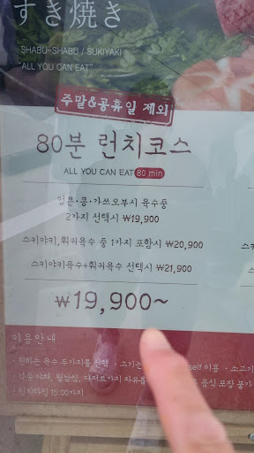 Read more일단 가격대비 음식 깔끔합니다. 샤브샤브는 소고기와 돼지고기 있는데 무조건 소고기가 맛있습니다. 다만 돼지고기 대비 맛난거지 소고기 자체로는 그냥 그렇습니다. 그래도 무제한 제공이니 냄새 좀 나도 먹을 만 합니다. 런치 타임과 저녁 타임이 있는데 오픈시간은 런치타임으로 11시 시작이고 3시부터 5시까지 브레이크 타임입니다. 저녁타임은 오후 5시에 시작합니다. 주말이나 휴일에는 4시 50분정도에 가면 자리 쉽게 확보가능합니다. 아이들은 닭강정과 볶음밥을 맛있다고 합니다. 특히 닭강정 맛집입니다. 떡볶이도 있는데 초등학교 떡볶이 스타일입니다. 육수에 각종 야채 넣어 맛을 낸다음 고기넣어서 실컷 드시고 나서 쌀국수나 우동 또는 물만두 넣어 먹어도 좋습니다. 그리고나서 계란넣고 죽도...