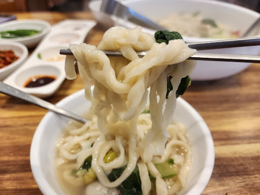 This place was recommended by our taxi driver, a local in Gyeong-ju. Arrived around 2pm on a weekday and waited less than 30 minutes till we got a seat. The food came out very quickly after ordering. As you can see, the buchimgae 부침개 is full of fresh seafood, and the noodle soup filled with clam. Good portion, deep seafood flavours and nice texture of hand pulled noodles. Recommend visiting if you’re heading to Bulguksa as you can drop off on the way. It is slightly far from the main 황리단길 area. If you have the Tabling app, you can reduce the amount of...
