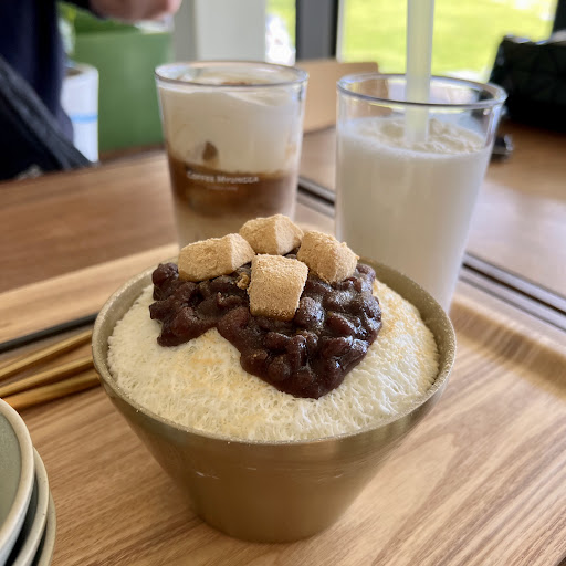 Read more일요일 점심 때 갔는데도, 조용한 분위기 였어요. 빙수 진짜 맛있어요! 팥도 달달하고 얼음도 포슬포슬하고, 에스프레소 하나 시켜서 부어서 아포카토처럼 먹으니 더 꿀맛이에요😋 명가치노는 달달한 크림이 가득 올라가 있어요. 아이스크림 쉐이크는 많이 녹은 상태로 나와서 조금 아쉽네요💦 사람 많을 줄 알았는데, 한가한 분위기에서 맛있는 커피 즐길 수 있었어요. 이 날 날씨가 워낙 좋아서 야외자리에서 광합성 하는 사람들이 많더라구요😆 가을에...