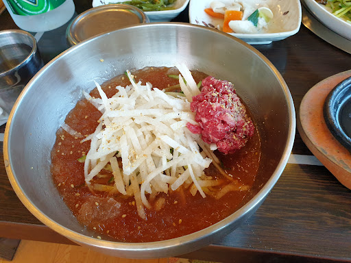 Read more맛집을 검색해서 찾아간곳이었어요.간단히 저녁먹을겸 고기를 구워먹기보단 식사메뉴로 골라서 주문했어요.한우육회비빔밥 한우물회 떡갈비정식 떡갈비추가 이렇게 주문했어요.반찬들도 리필이 되어서 좋았지만 잡채나 전을 한번더 달라고할때는 조금 싫은 티를 내더군요.그리고 써빙보시는 분이 피곤하신건지 반찬그릇을 식탁에다 딱 던지든 내려놓더군요.맛보다는 서비스로식당을 가는데 맛까지 별로인것같았어요.그치만 육회비빔밥에 나오는 고추장은 매운듯하면서도 참 맛있었구요.한우물회는 사리도 주시는데 추가요금이 나와오. 어디에서도 맛본적없는 한우물회! 먹기전까지는 선입견으로 인해 별로라 생각했지만 의외로 맛났어요. 여러가지 가게내 소품들중에 박정희대통령이 써주신 글을 보고 조금 놀랐답니다.주차장은 가게앞에 넓어서 주차걱정안하셔도 됩니다.가을엔...