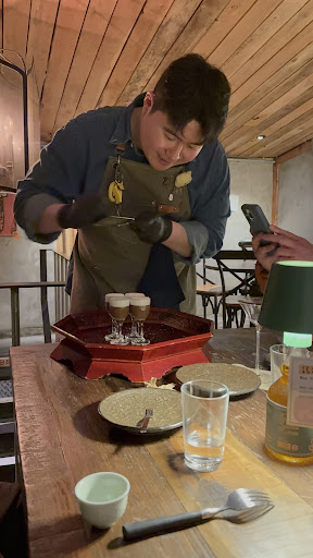 Read moreWe had made a reservation but had to cancel it due to changed plans. Nevertheless, we had a chance to come later that night and the owner came out to us and invited us to a nice table on the second floor, which is sort of a loft. The ambiance is very swanky, with low light and perfect cocktail bar vibes. They have free all you can eat shrimp chips and several tapas style items you can order. We had a cheese and meat plate and a sausage and potatoes plate. Both were tasty. The cocktails were great. They have some traditional options and some unique options, like a cocktail made with radish kimchi juice. They also have good mocktails. And they have whiskeys and soju. No beer. We ended with a dessert cocktail that was like tiramisu in cocktail form. Overall this is a great bar if you are in Gyeongju. Possibly the best bar in the city. It’s also open till 2 am which is nice because nearly all the restaurants...