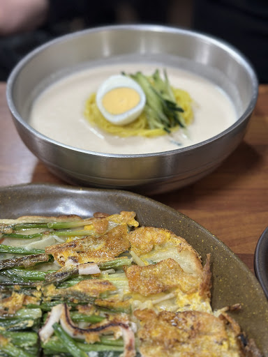 we went for the most popular dish: hot soybean soup (option 1) — a light, slightly sweet soup with rice cakes. ıt reminded me of a warm bowl of sweet oat porridge, but with a very korean twist. seating is traditional, on the floor, and shoes are removed at the entrance as expected in many local spots.