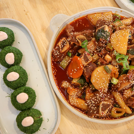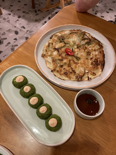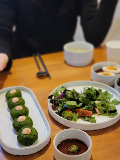We got the first beef option, the seaweed rice balls and the cabbage jeon. We arrived at 7.30pm and were seated without a wait. The food was okay, but the side dishes felt a little disjointed. The bean sprouts were soggy and the salad with balsamic was a strange choice for a...