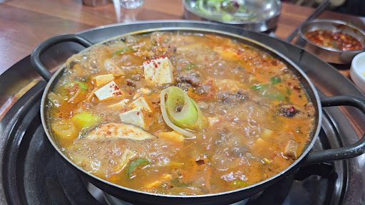 경산시 남산면에 위치한 이름난 식육식당입니다. 오래된 노포에 내부도 넓지 않고 주말에 가면 1시간 정도는 기다려야 입장할 수 있습니다. 가족들과 4인식탁에서 6~7명이 먹곤했던 기억이 나네요. 평일에 가도 사람이 많습니다. 하지만 자리에 앉아서 불판에 고기를 구워서 먹는 순간 그런 불편함은 기억나지도 않습니다. 직접 도축한 고기의 품질과 맛이 예술입니다. 메뉴 중 토시(주먹시), 안창은 미리 예약해야만 먹을 수 있고 생고기(뭉티기)는 평일에만 주문할 수 있습니다. 이번에는 평일에 방문해서 구이, 육회, 생고기, 된장찌개를 주문해서 먹어 봤습니다. 21년째 갔던곳인데 처음으로 평일에 가서 생고기(뭉티기)를 먹어보게 됬습니다. 한접시에 260그람이라는 적지 않은 양에 큼직큼직하게 썰어서 먹기가 힘들지 않을까 생각했는데 식감이 아주 좋았습니다. 같이 나오는 소스도 맛이 좋네요. 육회로 시작해서 구이 생고기를 거쳐 된장찌개로 마무리 했는데 어찌나 맛있던지 계속 먹고 싶은 생각이 들정도 였습니다. 평일에 미리 예약해서 토시, 안창, 생고기 꼭 드셔보시길 추천합니다. 된장찌개는 조금 드시다가 밥을 말아서 졸인 다음 드시면 깔끔하게 마무리 할 수 있습니다. 수도권에 살아서 자주 올 순 없지만 기회가 있을 때마다 방문합니다. 오랜 세월 한결같은 맛이...