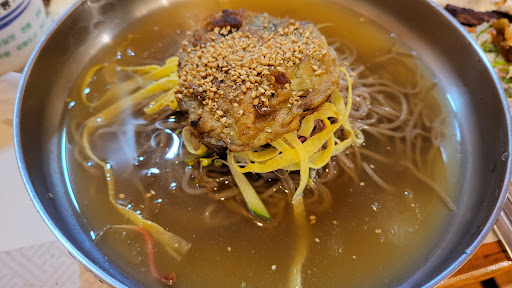 Read more요리명장의 정갈하고 깔끔한 밑반찬 서비스인데도 일품인 맑은 선지 지리탕 1++살살 녹는 한우 살치살과 육회 바싹 익힌 육전이 통으로 올라가는 냉면은 시원하고 면발도 졸깃 탱글 서비스로 내주신 노란 느타리 구이가 예술 제철 업나무순 오가피순과 당귀...