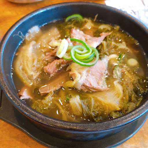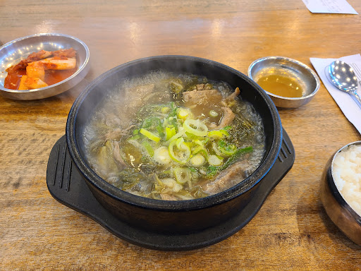 Read more한우국밥으로 맛집이네요. 한우를 재료로 몇일동안 국물을 준비한다고 음식점 벽면에 광고가 어마어마하네요. 자극적이지 않으면서 담백하고 깔끔한 국물이 남녀노소 즐기기에 부족함이 없어요. 하지만 국물이 좀 심심해서 그냥 먹으면 괜찮은데 밥을 말면 좀 밍밍하네요. 고기도 많은편은 아니예요. 김치는 국산이어서 요즘같이 예민한 시기에 안심이구요 가자미무침도 괜찮았네요. 가격대비 적당하며 주차장과 식당도 넓어서 좋네요. 근데 궁금한게 이정도 규모면 코로나때문에 띄어 앉아야 할거 같은데 그런것도 없고 칸막이도 하나도 없는게 좀 불안하긴 하네요. 국밥만 보면 별은 세개인데 국산 김치때문에...