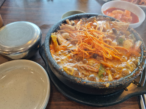 동료가 점심 먹을 장소로 검색해줘서 찾아갔는데 12시 이전에도 내부엔 손님이 가득했습니다. 특히 나이 좀 있으신 분들이 많아서 중박은 될거라 생각했는데 맛집이더군요. 그리고 다들 뚝배기 혹은 전골냄비 앞에 두시고는 식사하고 계셨지만 무슨 음식인지 몰랐는데 서빙해주시는 이모님이 이 가게는 생생정보통에 나왔고(가게 PR) 제일 유명한 메뉴 먼저 추천해주셔서 메뉴선택이 매우 편했습니다.