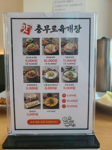 회사 근처에 최근 오픈하여 점심, 저녁으로 5번 방문함. 충무로육개장(기본), 버섯육개장, 육개장칼국수, 맑은 육개장, 사골옹심이만두국 5개 메뉴를 한번씩 먹었음.