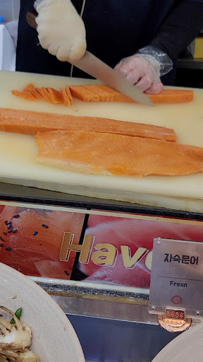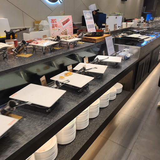 Read more프랜차이즈 저가 뷔폐의 왕~!!!! 옆에 위치한 고메스퀘어나 에슐리퀸보다 음식이 훨씬 괜찮다 그리고 홀직원들의 빠른 접시퇴식이 옆집 고메스퀘어보다 10배는 빠르다 그러니 식탁에서의 쾌적한 식사를 즐길 수 있어서 그부분은 장점이라 할 수 있겠다 음식도 종류가 다양하고 해산물이 주이다 보니 초밥외에도 해산물이 들어간 음식들은 다른 뷔폐들에 비해서도 훌륭하다 또한 거의 끝나가는 시간에도 남아있는 손님들을 위해서 음식을 계속 채워놓는 모습이 매우 인상적이었다 디저트와 아이스크림종류가 많은것도 아이들과 같이 방문한 부모에게는 또다른 장점이 될 수 있겠다 한마디로 동가격대 가성비 극강집~!!! 그래서 제...