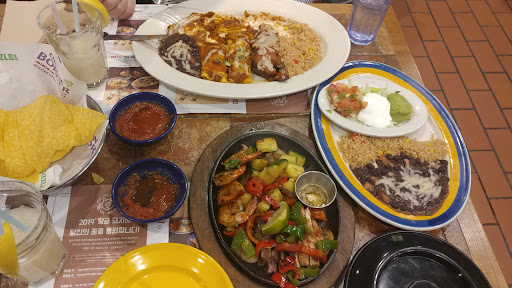 ย ย ย Read moreIt's a good taste of home. Supremely over priced and too long of a wait to get in. This makes you feel rushed a bit. But you cant go wrong if you need that Tex-mex taste. Service is... Friendly and speak English but can be a bit weird and/or shy due to language. Food is not synced so one of you will get your food well before the other. Chips n Salsa is great. I had the enchilada steak plater whice tasted great. Friend had the fajita steak plater. Both of those plus 2 mug peach margaritas cost 85,000 won in total. But it was well made. It's a once a year kind of place. Located in Star Field mall... The atmosphere is quite nice even for being busy. There are better places than this for sure but if you've been craving it (and you have the money)...