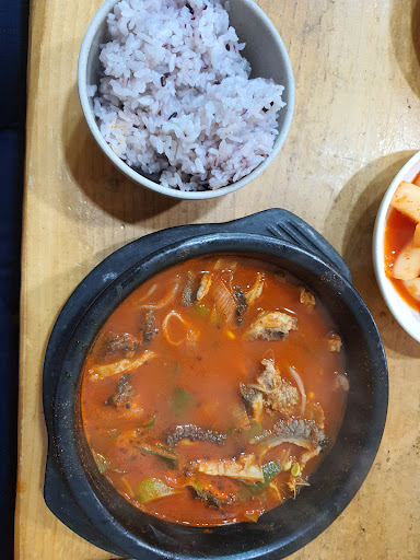 Read more우선 맛있습니다. 강원도는 고추장을 넣고 끓인 국물 요리가 많은게 특징인 것 같습니다. 고추장 칼국수. 이 집 해장국에도 왠지 고추장이 조금 들어간 것 같습니다. 신기하면서도 맛있었습니다. 친구들도 김치가 맛있다고 엄청나게 먹었습니다. 횡성에 왔으니 한우는 먹고 싶은데 비교적 저렴한 가격에 국물을 좋아하신다면 추천드립니다.
