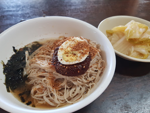 Read more강원맛집 친절막국수는 #허영만 화백님의 #만화 #식객 에도 나오는 곳이다. 사장님께서 운동을 무척 좋아하셔서 덤벨 17kg을 80회 이상 하는 사람에게는 개인, 단체 식사를 무료로 제공하는 재미난 곳이기도 하다. 이 곳의 막국수 면은 100% 메밀만 쓰고 있고 하루에 판매하는 양도 제한되어 있다. 밀가루와 메밀의 반죽비율을 8:2 로 만들고 전분은 섞지않고 밀가루만 섞어서 면을 뽑는다고 한다. 막국수의 고명으로는 참깨가루와 양념장, 김, 계란등이 올려져 있다. 개인적으로 가장 좋아하는, 그리고 뭉클한...
