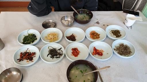 긴말않겠습니다 만원에 사진만큼나오는게 다인데 불친절에다 사람많은건 알겠는데 주문도 안받고 뭐시켰냐고 한 세번은 물어본듯 하네요 아무리바빠도 식탁보 주면서 이것좀 깔아주세요도 아니고 그냥 이거좀...하고 던지고 감 그냥 가볍게 백반식으로먹자해서 참게탕 유명하다지만 점심으로 과할거 같아서 재첩반상 시켰더니 세상 계란 후라이정도는 나올줄 알았더니 만원에 반찬이 저게 다임 저게 끝 하동에서 여기갈바에는 길거리에사 파는 터키닭꼬치가 한 200배는 나음 그래서 바로 재첩국 한사바리 다 들이키고나와서는 앞에 축제 닭꼬치랑 치즈호떡 먹으러갔어요 제가 리뷰진짜...