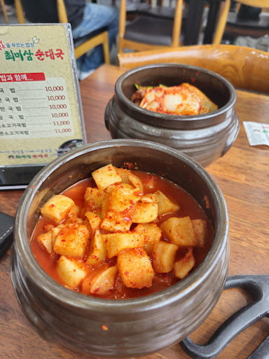 순대국과 모둠순대를 시켰는데 적혀있는대로 순대국에 다대기, 새우젓, 들깨가루, 부추무침 넣고 칼칼한거 원해서 청양고추까지 넣으니 딱 좋았음! 고기에서 냄새도 안나고 쫄깃해서 맛있었는데 순대국안에 검정색 순대가 당면만 있어서 뭔가.. 물컹한 식감만 있어 남김 ㅠㅠ 하얀순대는 모둠순대와 동일해서 맛있음. 다음에는 고기만 해서 먹으려고 함 ㅠㅠ