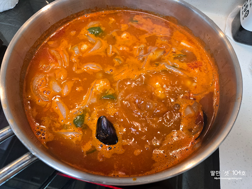 그리고 아내가 매콤한 국물을 원해서 제안한 짬뽕탕도 배달로 주문했습니다. 사실 배달 짬뽕탕은 퀄리티가 낮을까 봐 불안했지만, 막상 배달을 받고 보니 무게가 상당할 정도로 내용물이 매우 푸짐했습니다. 냄비에 담으니 가득 찰 정도였고, 맛 또한 기대 이상으로 훌륭하여 놀랐습니다. 매장에서 먹는 짬뽕탕과 비교해도 크게 뒤지지 않는 수준이었습니다.