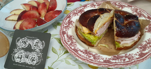 오늘 먹은 메뉴는... 특이하돼 조화로운 재료로 단백하고 맛있는 프리첼로 만든 잠봉 샌드위치!