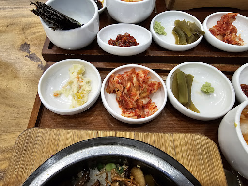 중부고속도로 남이천IC를 나와 차로 약 5분정도의 거리에 위치한 솥밥전문 한식당. 모던한 느낌을 주는 2층 단독건물에서 운영되고 있는데, 최근에 지어진 듯 깨끗하다. 실내는 넓고 쾌적하며 내부에 2층으로 오르는 계단이 설치되어 있는데, 2층은 '코지모가'라는 카페가 있다. 장어솥밥, 전복솥밥, 소고기솥밥, 버섯솥밥 등 7가지의 솥밥정식 메뉴가 있고, 사이드메뉴로 등심튀김, 더덕구이, 떡갈비 등 3가지를 판매한다. 솥밥의 가격대는 다소 높아 보이지만 음식의 맛과 퀄리티에 비하면 적절하다는 생각이 든다. 장어솥밥과 전복솥밥을 주문했는데, 솥밥과 물김치를 포함한 6가지의 반찬이 제공된다. 같이 나오는 빈그릇에 솥밥의 내용물을 덜어내고 솥에 물을 부어 누룽지를 만든다. 장어나 전복은 충분하게 들어있고 맛도 기대이상이다. 이천쌀을 사용한다고 해서 그런지 밥맛도 아주 좋다. 건강한 맛으로 배부르게 그리고 맛있게 먹었다....