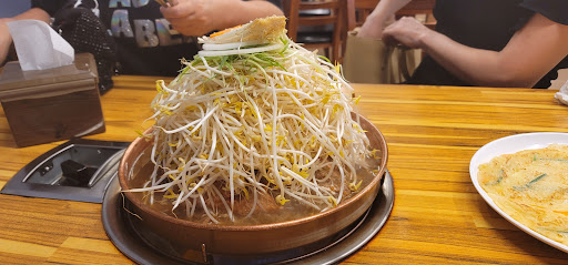 주문후 1분도 안되어서, 콩나물 산더미 불고기와 3분도 안되어서 막국수가 제공됩니다. 빨리!!! 부침 전은 직접 부치셔야 합니다. 빨리빨리와 다르게 빨리 안익네요.