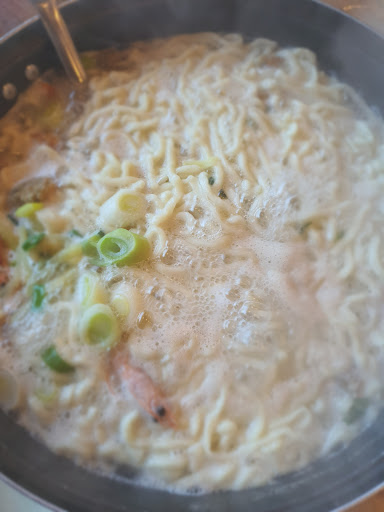 보리비빔밥이 조금 먼저 제공되며 칼국수 양이 상당히 많고 황태.바지락.미더덕.새우가 그래도 풍부히 들어있음 면은 조금 더 익혀 드셔야 합니다.