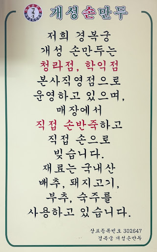 경복궁 개성손만두는 풍부한 재료가 들어 있는 가정적인 맛을 즐길 수 있는 음식점입니다.