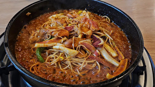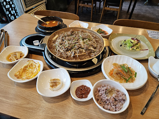 It’s not bad. The meat tastes quite peppery, and the flavor goes well with vegetables and spicy radish shreds. This set meal costs 15,000 won and gives you an egg. You can choose to put it on a copper plate and cook it with the meat. You can use the frying pan provided by the store to fry it alone. Pay attention to the size of the heat. If the fire is too high, it will easily burn. There are free side dishes and vegetables for filling the meat. The spicy shredded radish is more delicious among the side dishes. Overall, if you come to Songdo Convention Center or Songdo Park, you can...