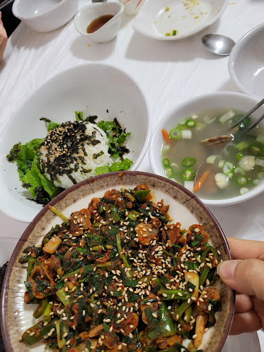 Read more칼국수는 바지락 국물 맛이 약한데 바지락 양이 적은건 아니다 같이 넣은 버섯이 그나마 약한 바지락 향을 잡아먹는듯 차라리 버섯 없이 하면 나을듯 면은 적당히 잘 익어 밀가루 잡내는 없지만 딱히 바지락 칼국수라는 느낌이 안드는 애매한 국수 꼬막 비빔밥은 들기름 + 다른 기름인듯한 기름과 간장 베이스 양념에 고춧가루 약간인데 다 넣어도 안짜고 느끼하기만하다 차라리 기름을 줄이고 고추장을 넣었으면 맛있었을텐데 느끼하고 싱겁다 튀김은 맛은 중상이나 가격대 양을 따지면 글쎄 밑반찬 깍두기는 짜고 시고 배추김치는 겉절이인데 풋내나고 단무지는 쿰쿰하다 유일하게 숙주나물만 그럭저럭 괜찮고 마른 김만 맛있다 튀김만 사먹고 음식은...