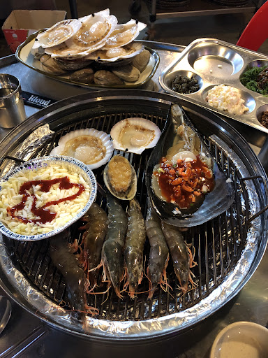 Read more조개구이 새우구이 칼국수 세트로 먹었습니다! 새우랑 조개들이 다 싱싱하고 크고 살도 많고 실해서 정말정말 맛있게 먹었어요! 특히 정말 신선하다는게 느껴져서 더 좋았던 것 같습니다. 평일이고 사람이 없을 시간에 가서 엄청 여유롭게 먹기도 했어요. 사장님이 각 조개들을 어떻게 먹어야하는지 다 설명해주시고 직접 시범도 보여주시고 사장님 특제 비법 소스도 넣어주시고 소라살도 발라주시면서 저희한테 말도 걸어주시고 친구들끼리 왔다고 하니까 사진도 찍어주시고 그래서 엄청 즐겁게 먹었습니다!! 새우 자체도 싱싱하고 커서 좋았는데 처음에 잘라놓으라고 말씀하셨던 새우머리구이!! 새우머리구이 정말정말 맛있었어요! 사진을 못남겨서 너무 아쉽네요ㅠㅠㅠ 다 먹고 난 다음에 나오는 칼국수도 정말 맛있어요. 맛있는 거 다음에 맛있는 거 다음에 또 맛있는 거로 쓰리콤보를 찍고 나오니 배가 정말 부르더라구요 남겨서 너무 아쉽습니다ㅠㅠㅠ 이럴때만큼 아쉬운게 없어요.... 다음에 가면 남김 없이 다 먹도록 하겠습니다 사장님!! 음식이 맛있는데 유쾌한 사장님이 계셔서 더더더 좋았던 것 같아요...