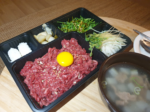 Read more사장님이 조금 무뚝뚝하시지만 육회가 너무 짜거나 달지 않고 한결같이 맛있다. 비빔밥에 들어가는 나물들도 항상 정성스럽고 뭇국은 곁들임으로 최고다. 배달도 되고 매장식사도 된다. 매장은 잘 꾸며져있었는데 요즘은 코로나로 배달 위주다보니...
