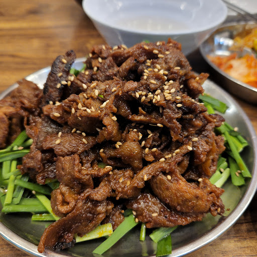 Read more돼지불백이 유명함 부추와 불맛나는 불고기 김치찌게(돼지고기 포함)는 덤으로 나옴 ※ 사리를 넣어 먹어도 좋음, 김치와 국물이 좋았으며, 찌게의 고기는 특유의 돼지 냄새가 있었음 밑반찬은 신김치, 어묵, 콩나물 어묵은 비추천, 콩나물 평범, 신김치 맛남 쌈채소, 마늘이 나옴 : 쌈장이 맛있었음 종업원들께서 필요한지 챙겨줌 가성비는 정말 좋았으며, 밥을 비벼 먹을...