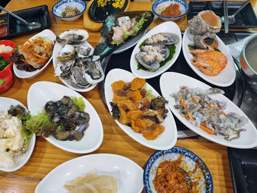 분위기와 특징 = 수산시장 느낌의 활기찬 분위기, 가족·친구·모임 등 다양한 방문객에게 인기 = 각 점포마다 사장님의 서비스와 분위기가 미묘하게 다를 수 있지만, 메뉴와 가격은 동일