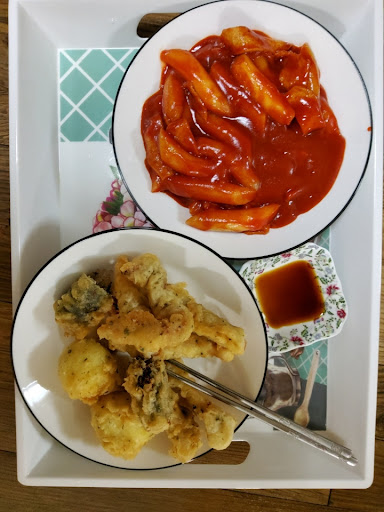 Read more항상 줄서있는 분식점 오늘은 기필코 기다림에 지루함을 이기고 튀김과 그 유명한 떡볶기를 사왔다....줄서기전엔 몰랐다 단지 떢볶이가 맛있어 서는줄 알았다 절대 네버 맛이 아니였음ㅋ양도 많고 튀김같은경우는 주문받고 즉석에서 튀기느라 늦고 떡뽂기도 조금씩 덜어서 하느라 늦는거임 맛은? 음 떢볶기는 고추장맛만 나고 튀김은 한번만 튀겨그런지 바삭함도 덜하고 간은 약간짜다 코로나로 인해 다른 식당들이 10시까지라서 더 손님이 많은듯ㅋ줄서지...