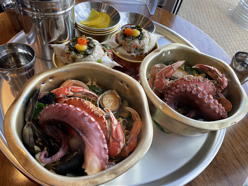 I was in the area alone, so this was pretty much one of the few options to eat alone. I got their seafood ramen and gimpap. The ramen looks really fancy, but is a complete hassle to eat, and the place overall is quite overpriced, but you get a nice view of the sea and since you're there... might as well give it a go. Not worth going out of your way...