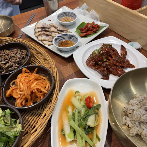 Read more맛있는 보리밥 잘 먹었습니다. 점심시간 지나고 방문해서 자리는 여유가 많았습니다.여러 야채와 나물을 놋그릇의 보리밥에 올려서 고추장과 참기름을 올려서 비벼 먹으니 너무나 맛있네요. 야채와 나물은 별도 셀프코너에서 추가해서 먹을 수 있습니다. 지금보니 막걸리를 무료로 제공하고 있네요. 한상차림에 기본으로 나오는 보쌈은 점심 시간이 지나서 준비된 비계부분의 골라겐이 좀 말라서 그런지 서로 붙어서 잘 떨어지지 않은걸 제외하고는 만족스러웠습니다. 식사후 3층에 있는 카페에서 여유롭게 아메리카노나 믹스커피를 디저트로 한잔 하시면서 마무리하시면 행복한 시간을...