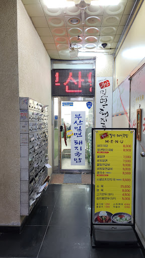 그렇다면 과연 제대로 된 부산밀면을 하는 식당에서는 어떤 맛을 낼까? 그 맛을 확인하기 위해 방문한 곳이 이곳 부산밀면돼지국밥 집입니다. 부산밀면 식당은 건물 외관에서는 보이지 않는데 건물 1층 복도를 따라 끝까지 가면 마지막 끝에 식당이 자리하고 있습니다.밀면을 먹으러 왔으니 밀면을 주문해야겠는데 과거의 경험을 되살려 비빔밀면이 아닌 물밀면으로 우선 맛을 길들인 후 다음 기회에 비빔밀면에 도전하기로 결정하고 물밀면을 주문합니다.