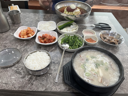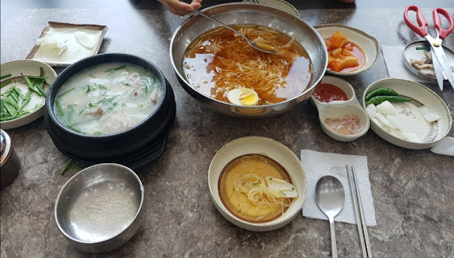 Read more여긴 메뉴선택에 있어 밀면보단 약간 독특한? 돼지국밥이 낫다. 건더기 고기양도 실하게 넣어주시고 부드럽다.특히 얼큰돼지국밥은 해장국 느낌으로 콩나물.우거지가 들어있고 맵찔이도 무난히 먹을만할 정도로 맵지않아서 베스트 메뉴로 드시는 손님들이 많다. 한가지 아쉬운점은 기름끼가 너무 많다는점 때문에 별하나 뺏고 주차헬이라는점도 참고바랍니다.국밥위에 뜬 기름제거만 잘해서 내어주신다면 추천메뉴로...